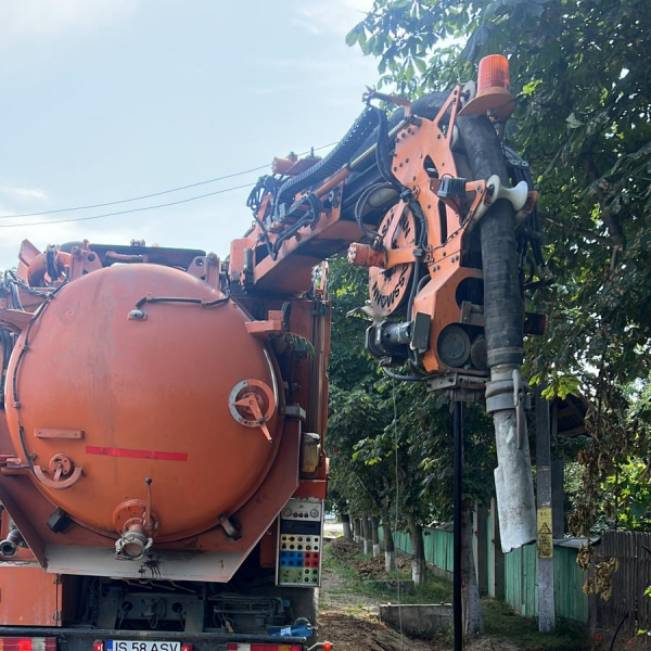 Realizam decolmatarea profesionala a retelelor de canalizare utilizand echipamente moderne de hidrocuratare si aspirare sub presiune.
